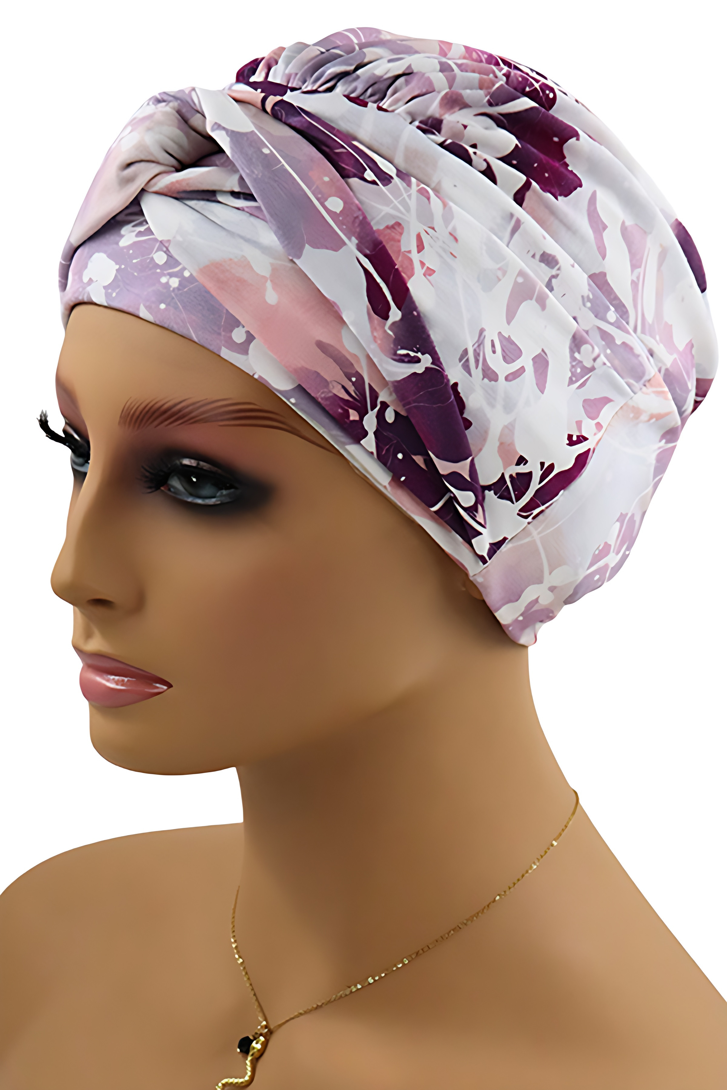 Przyjemny dla skóry turban uszyty z bambusowej wiskozy w różnych odcieniach i wzorach do wyboru. Jest to model gotowy do nałożenia, nie wymaga formowania na głowie ani zawiązywania. Rozmiar jest uniwersalny, dzięki czemu pasuje na różne obwody głowy.