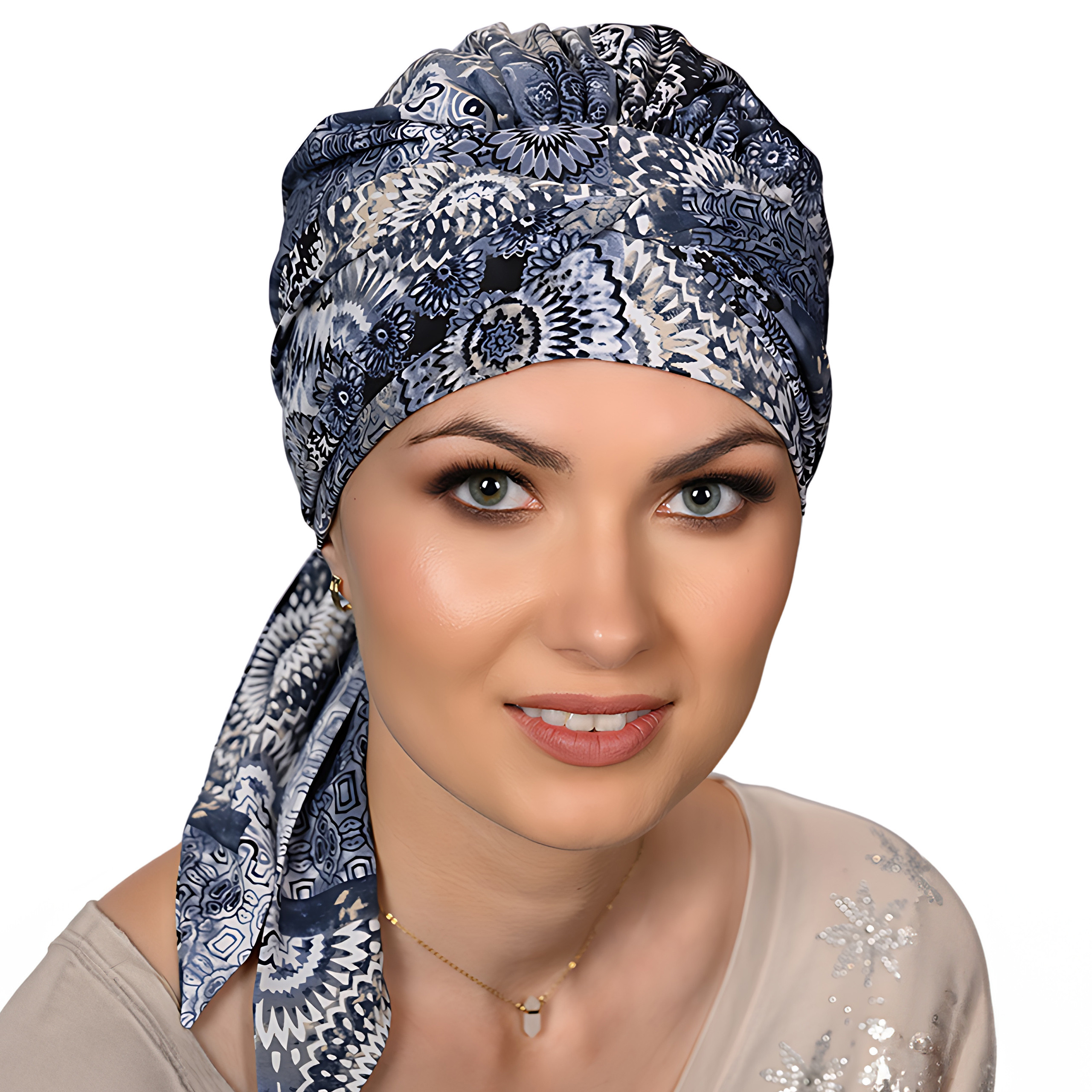 Chusta przeciwsłoneczna turban po utracie włosów na lato Amy Mousseline