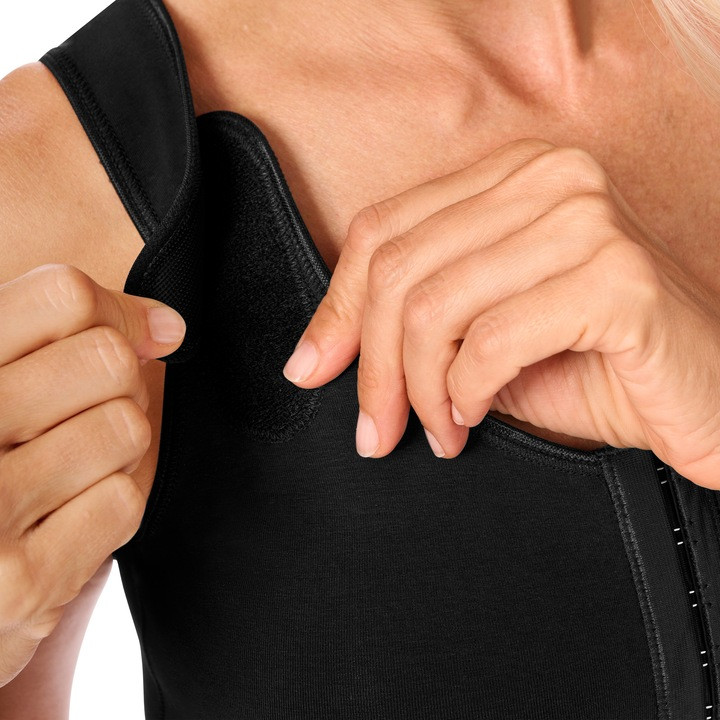 - Komfortne wsparcie: Zapewnia komfortowe wsparcie po operacjach piersi lub klatki piersiowej, gdy konieczna jest kompresja.