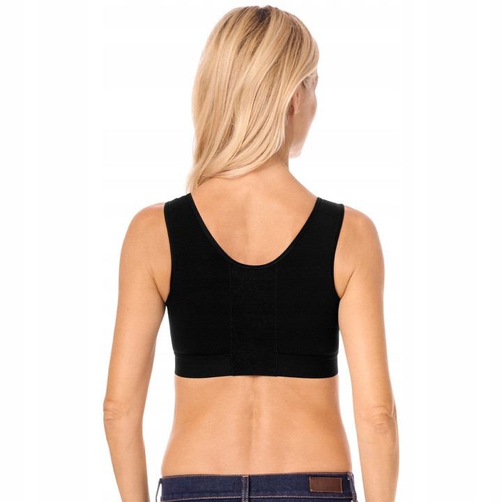 - Szerokie, regulowane ramiączka: Szerokie, regulowane ramiączka zapewniają komfortowe dopasowanie. Zapięcie z przodu ułatwia dostęp do operowanego miejsca.
