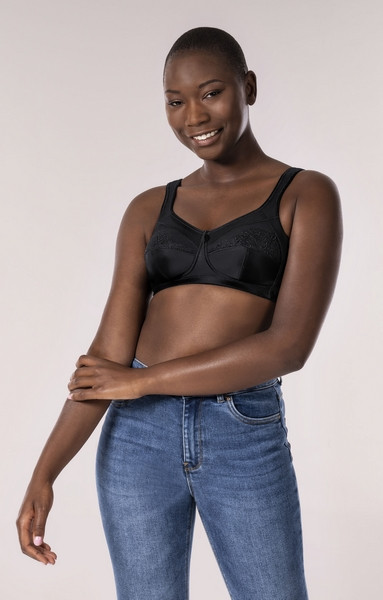 Biustonosz bez fiszbin z kieszonkami czarny Amoena Isadora SB 44114