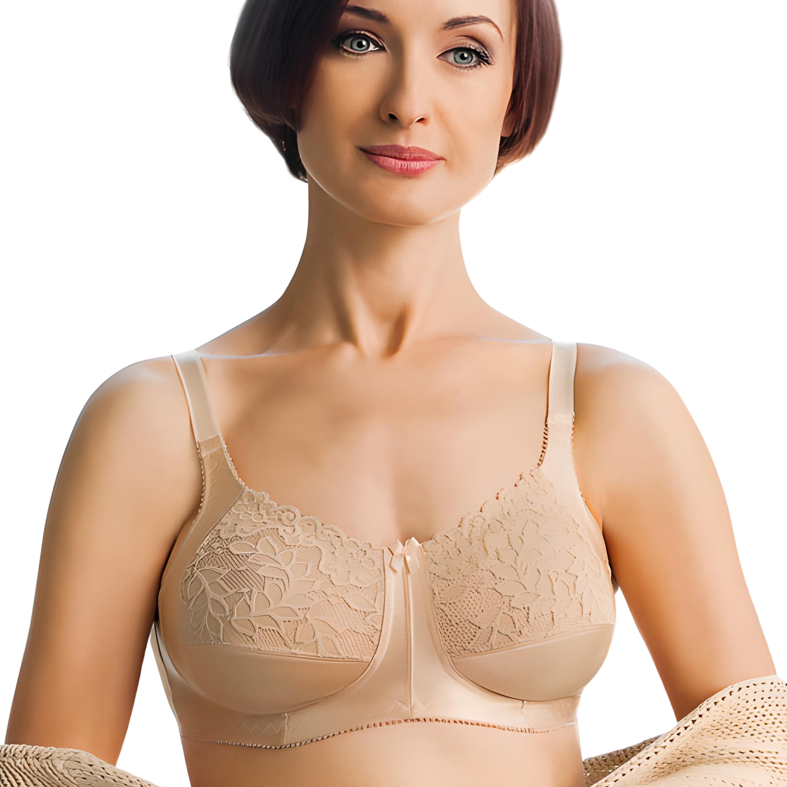 - Obustronne bawełniane kieszonki na protezy piersi lub wkładki uzupełniające – delikatne i przewiewne, idealne dla kobiet po mastektomii.