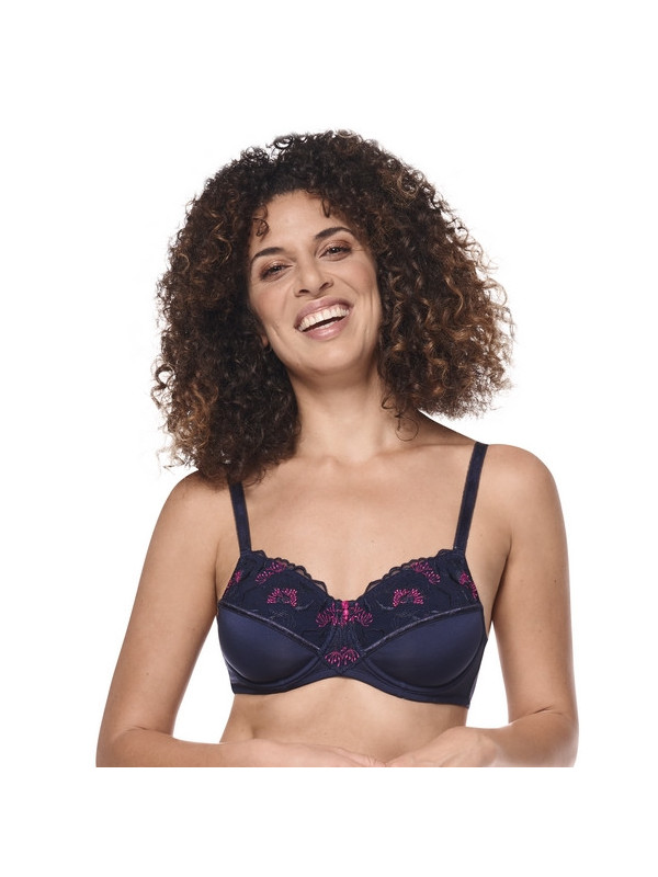 Biustonosz Amoena Delila WB zachwyca eleganckim wyglądem i komfortem noszenia. Górna część miseczek zdobiona jest delikatnym kwiatowym haftem, który subtelnie podkreśla dekolt. Dolna część oraz skrzydełka wykonano z gładkiej mikrofibry, dzięki czemu biustonosz idealnie dopasowuje się do ciała i jest przyjemny w dotyku.