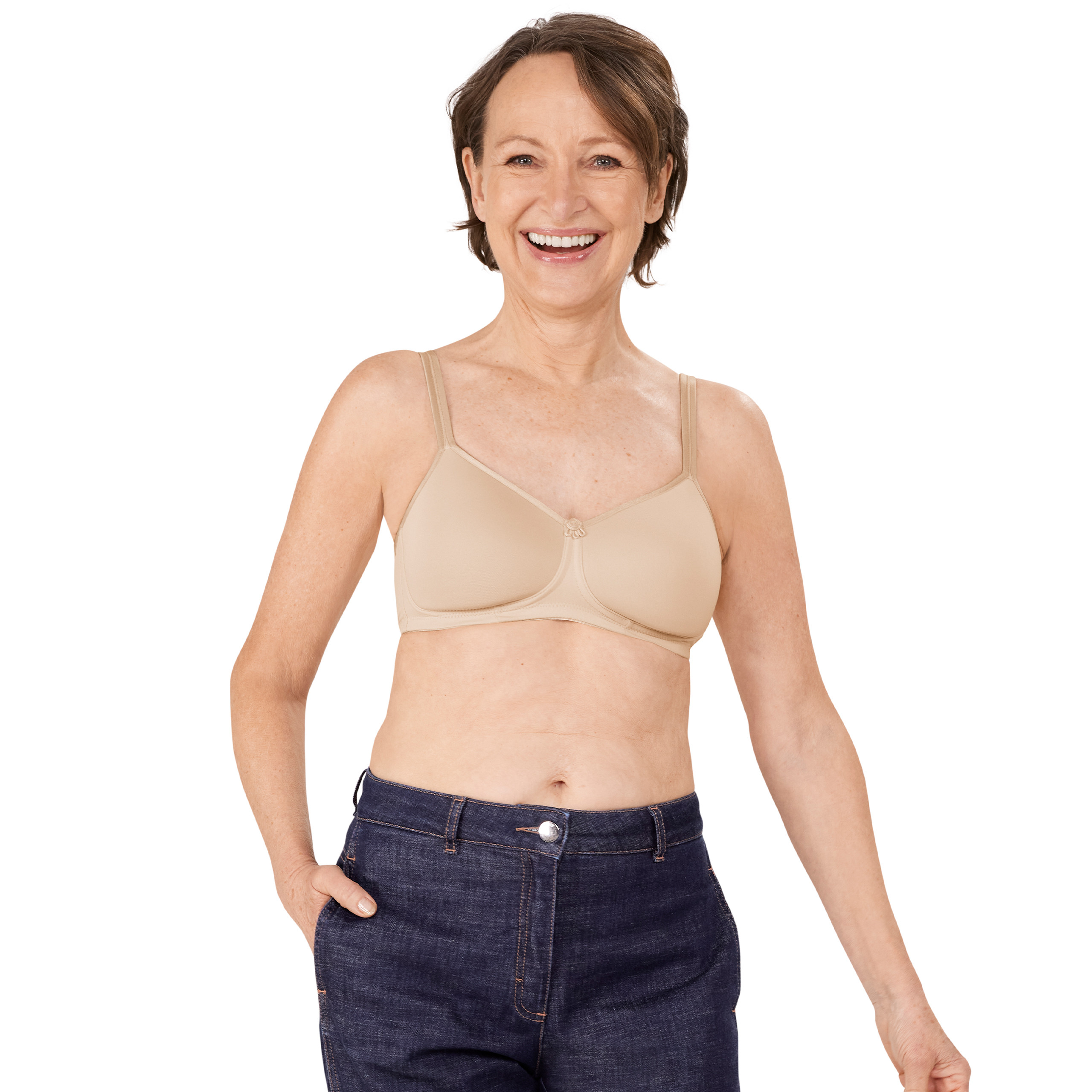 Biustonosz Mara w kolorze beżowym to doskonały biustonosz do noszenia na co dzień. Obustronne kieszonki bezpiecznie utrzymują na miejscu protezę lub nakładkę uzupełniającą.