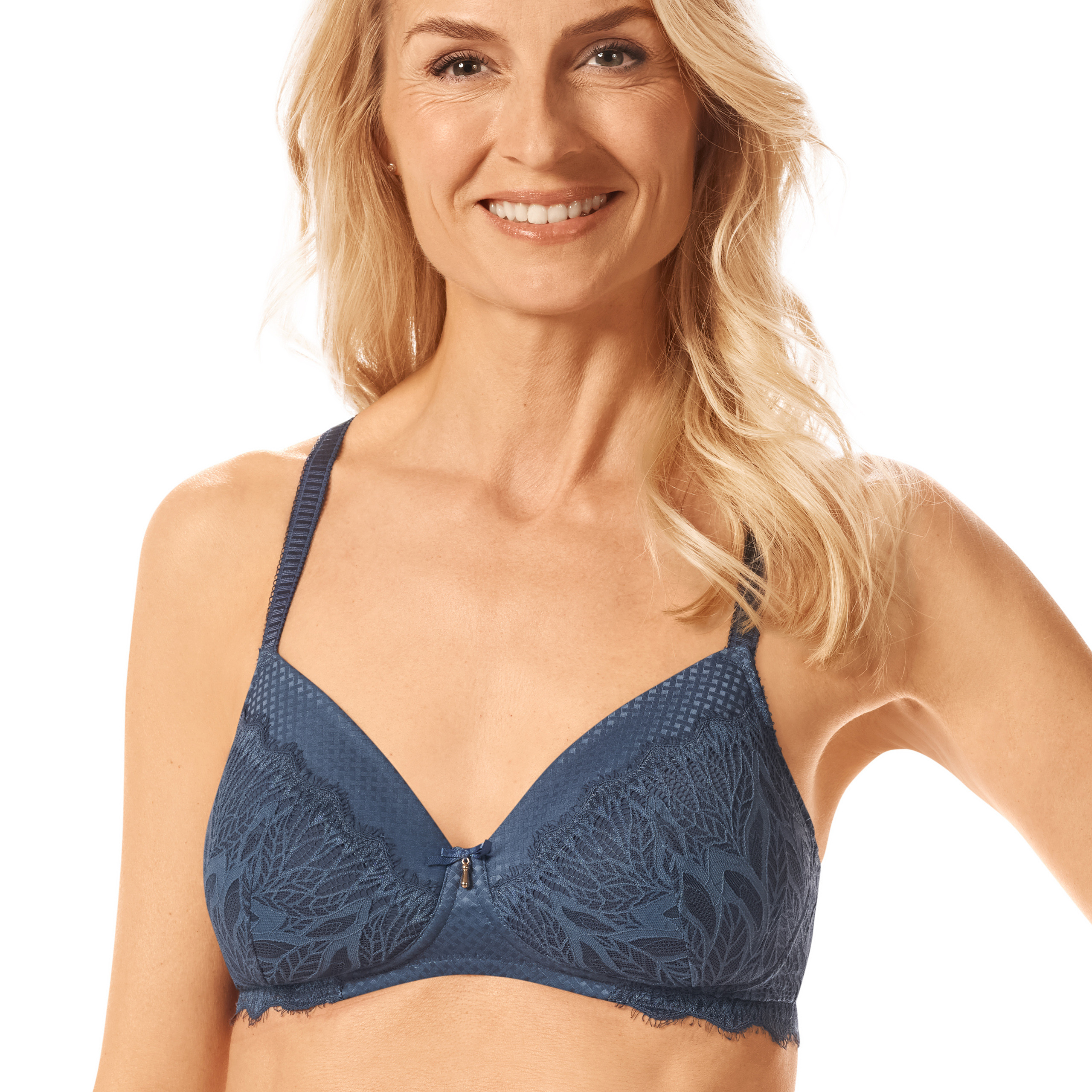 - Lekko wyściełane miseczki biustonosza dyskretnie maskują wszelkie nierówności i podrażnienia skóry, zapewniając efekt gładkiej sylwetki
