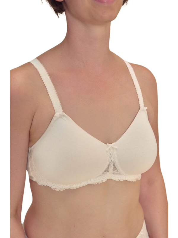 Model Floria łączy w sobie funkcjonalność biustonosza protetycznego z subtelną kobiecością - dzięki bawełnianej tkaninie oraz ozdobnej koronce w okolicy mostka. To idealny wybór dla kobiet z wrażliwą skórą, które cenią wygodę, delikatność i pewność noszenia protezy piersi.