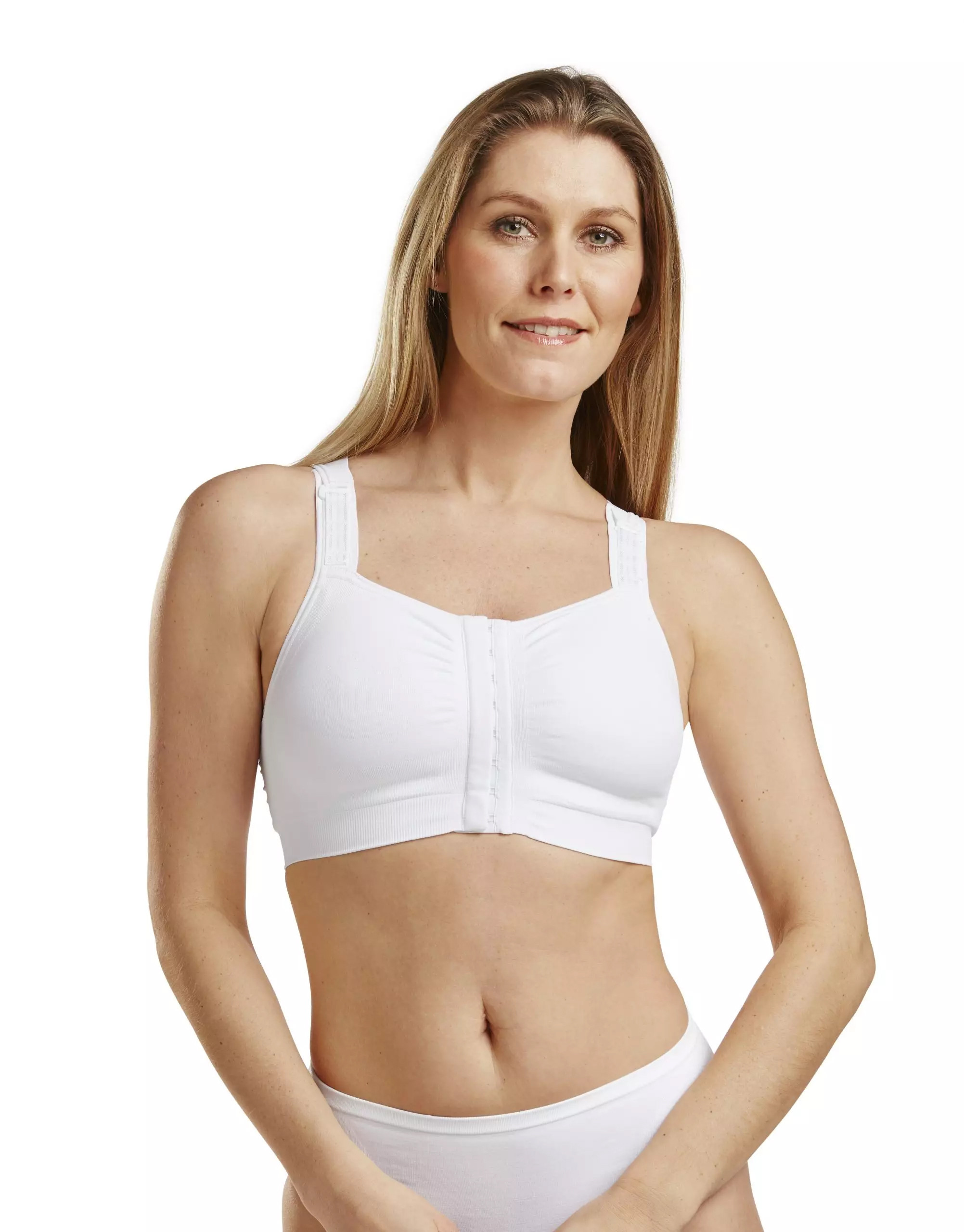 Dzięki przedniemu rozcięciu z zapięciem na haftki i odpinanym ramiączkom, zakładanie stanika jest łatwe dla pracowników służby zdrowia i pozwala na łatwe badanie miejsca operowanego. Dwukolumnowe zapięcie na haftki umożliwia regulację stopnia kompresji.