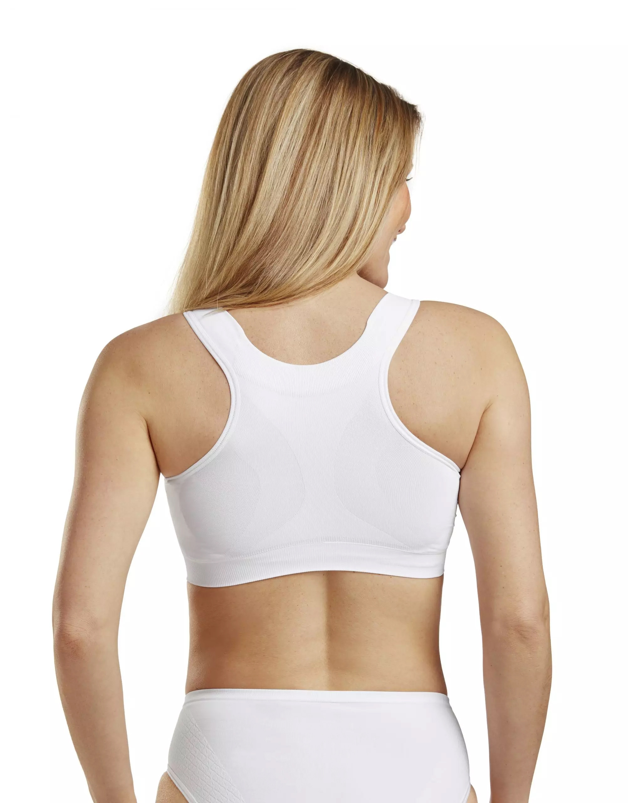 Biustonosz pooperacyjny Carefix Mary w kolorze białym jest bezszwowy, ale oferuje również zintegrowane strefy podtrzymujące i uciskowe dla uzyskania najlepszych rezultatów chirurgicznych. Biustonosz kompresujący jest przeznaczony do rekonwalescencji po zabiegu chirurgicznym piersi, gdy skóra jest delikatna i wrażliwa oraz gdy zalecane jest wsparcie i ucisk.