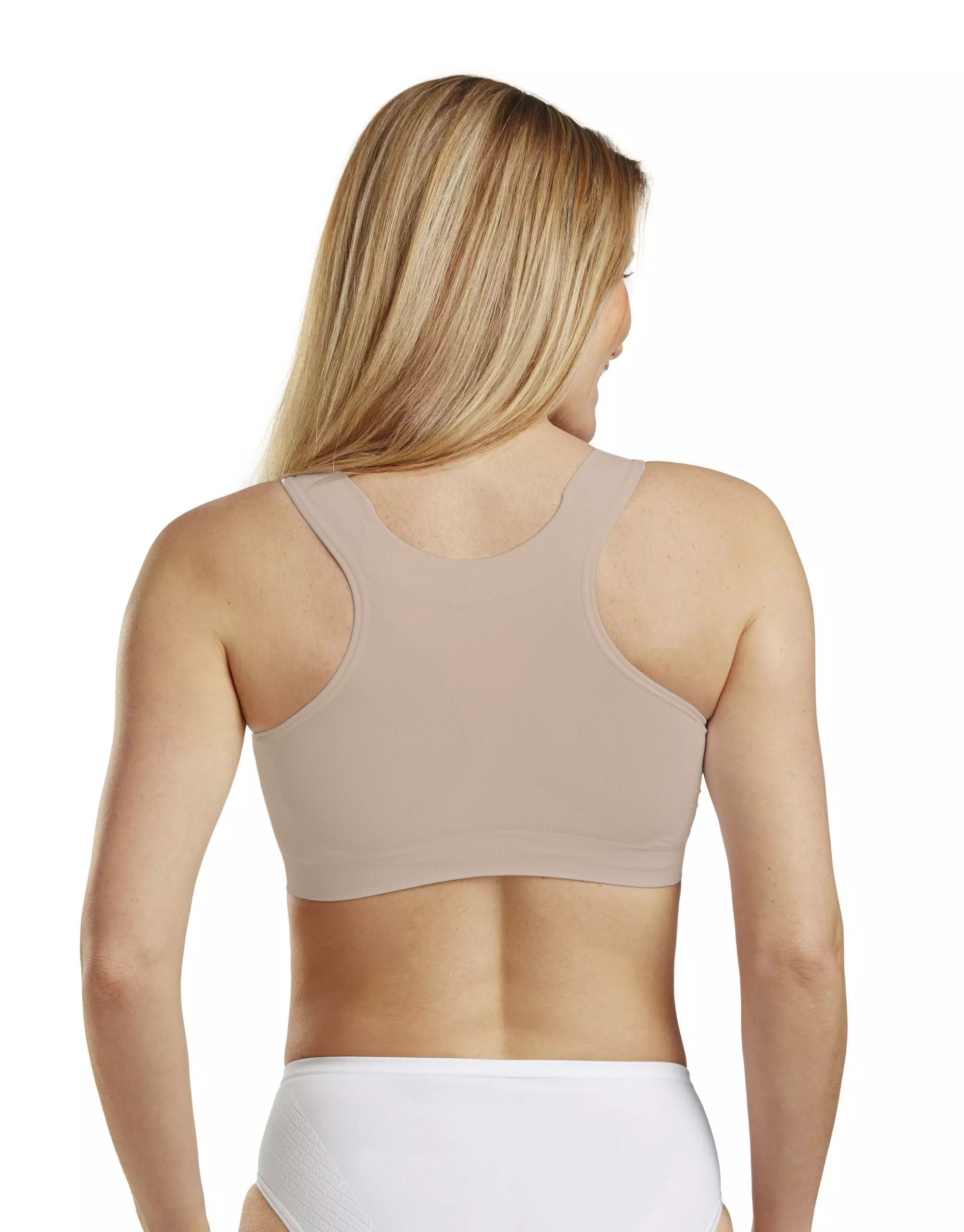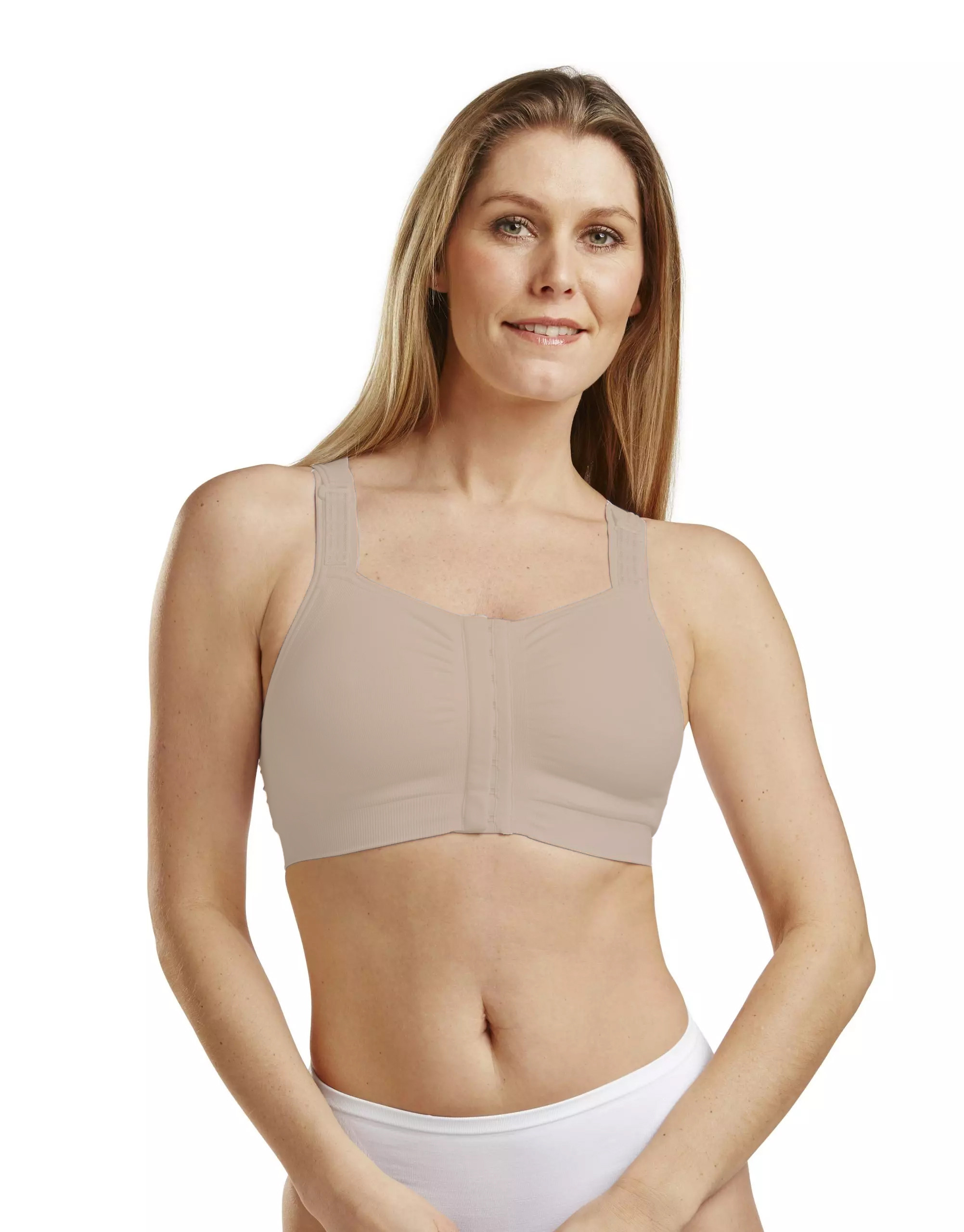 Biustonosz pooperacyjny Carefix Mary w kolorze beżowym jest bezszwowy, ale oferuje również zintegrowane strefy podtrzymujące i uciskowe dla uzyskania najlepszych rezultatów chirurgicznych. Biustonosz kompresujący jest przeznaczony do rekonwalescencji po zabiegu chirurgicznym piersi, gdy skóra jest delikatna i wrażliwa oraz gdy zalecane jest wsparcie i ucisk.