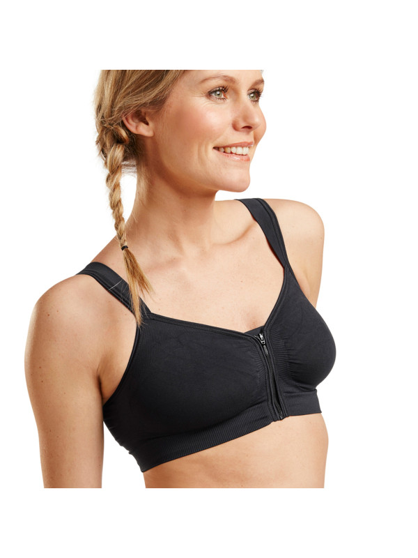 Dzięki przedniemu rozcięciu z zapięciem na zamek błyskawiczny i odpinanym ramiączkom, zakładanie stanika jest łatwe dla pracowników służby zdrowia i pozwala na łatwe badanie miejsca operowanego.
