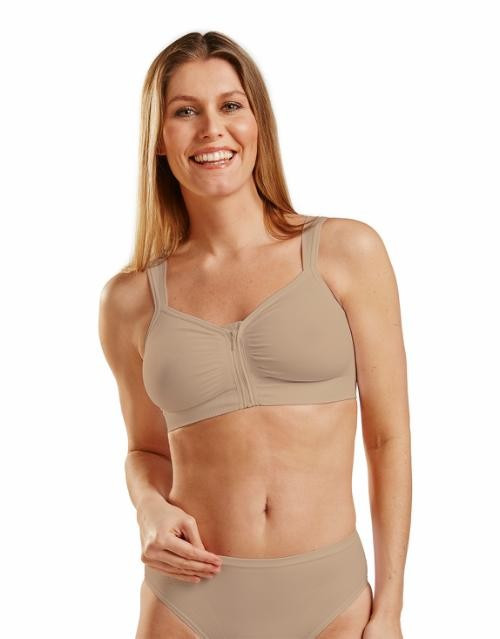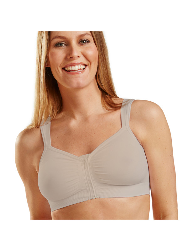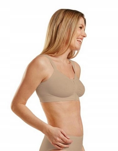 Dzięki przedniemu rozcięciu z zapięciem na zamek błyskawiczny i odpinanym ramiączkom, zakładanie stanika jest łatwe dla pracowników służby zdrowia i pozwala na łatwe badanie miejsca operowanego.