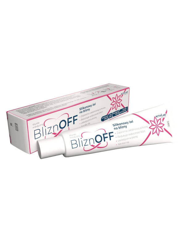 Maść żelowa BliznOFF to wyrób medyczny w postaci silikonowego żelu, przeznaczony do stosowania wspomagającego przy leczeniu blizn - powstałych po zabiegach chirurgicznych, skaleczeniach oraz w wyniku zmian potrądzikowych.