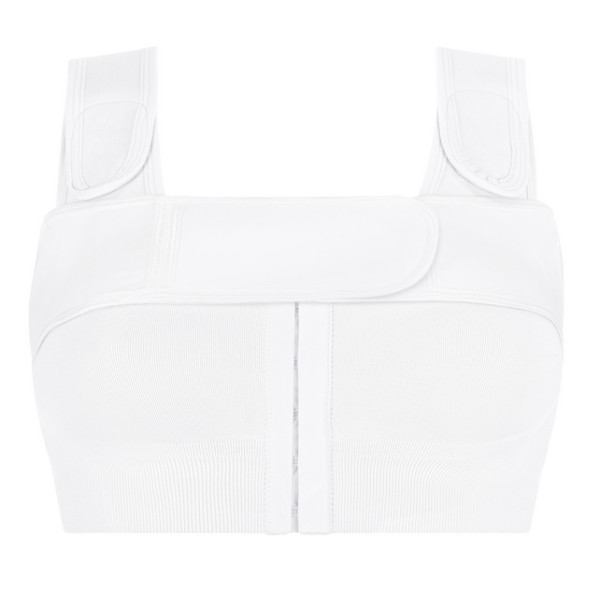 Pas został zaprojektowany tak, aby zapewnić optymalną kompresję górnej części piersi, stabilizację oraz komfort w kluczowym okresie rekonwalescencji. Pomaga utrzymać implant lub operowaną pierś we właściwej pozycji, ograniczając ryzyko przesunięć oraz podrażnień.