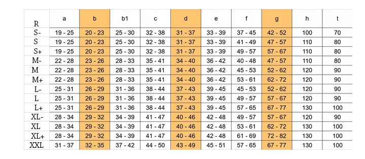 ✔️ g - obwód uda (5 cm poniżej kroku)