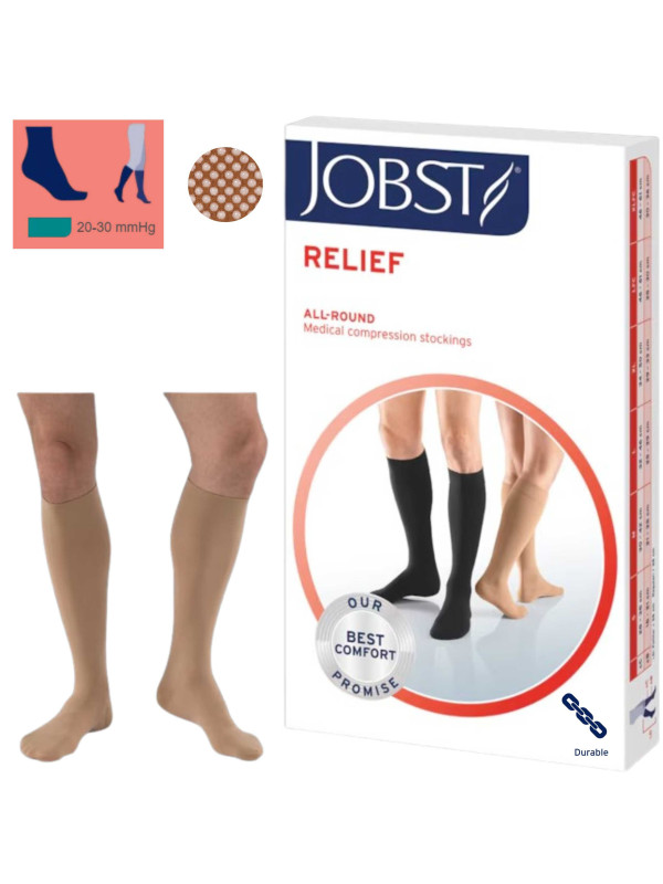Podkolanówki uciskowe JOBST Relief otwarte palce, beżowe, 20–30 mmHg II klasa, – na żylaki i obrzęki