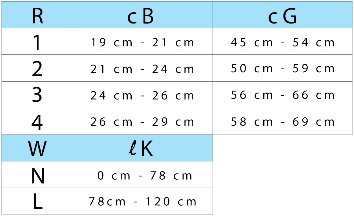 Odpowiednio dobrany rozmiar, jest podstawą właściwego działania terapeutycznego produktów uciskowych. W tym celu należy zmierzyć obwód obu nóg w miejscach wskazanych w tabeli rozmiarów.