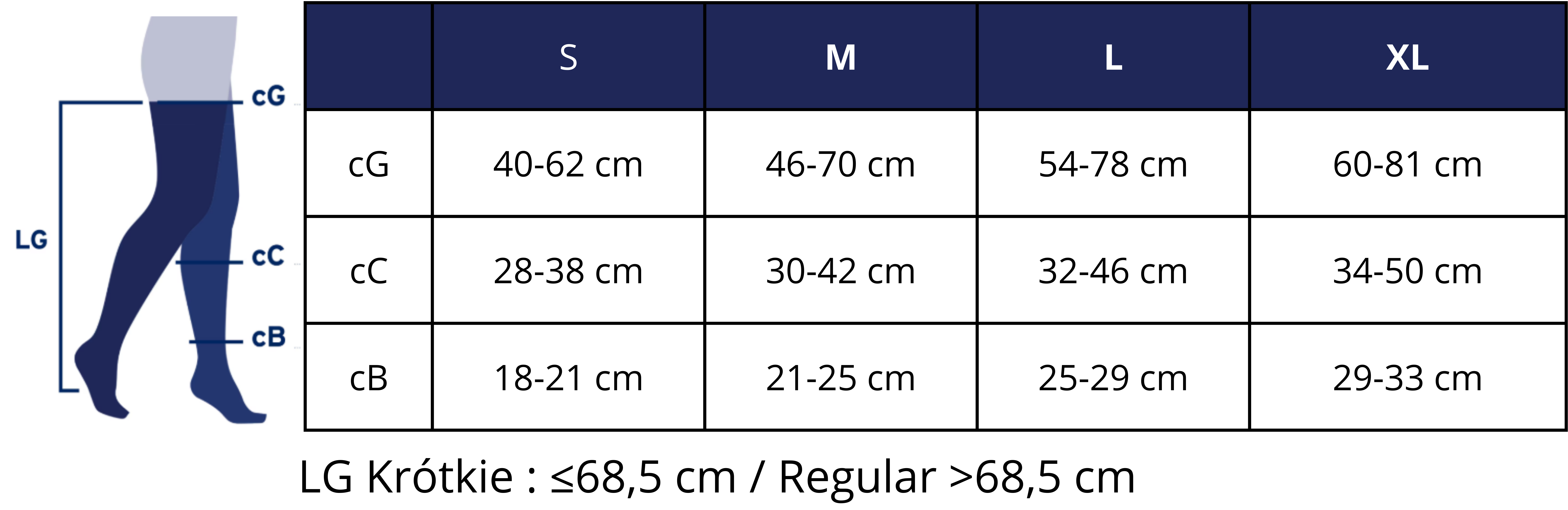 Na podstawie tych wymiarów dobiera się odpowiedni rozmiar zgodnie z tabelą producenta. Dobrze dobrane pończochy nie zsuwają się, nie rolują i zapewniają komfort przez cały dzień.