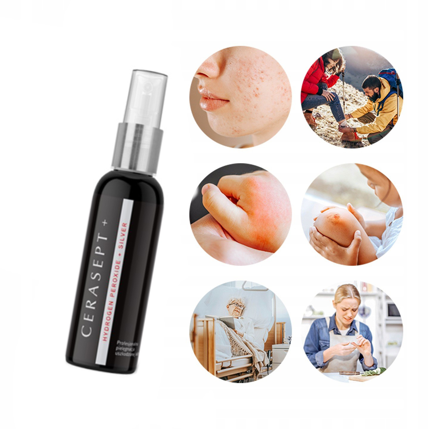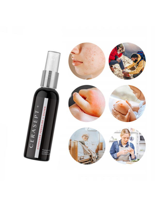 Cerasept + to innowacyjny płyn do skóry w jakiś sposób uszkodzonej. Płyn składa się z dwóch substancji: aktywnego tlenu i srebra, które połączone ze sobą dają znacznie lepszy efekt, niż stosowane osobno.