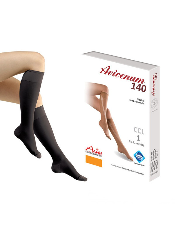 Podkolanówki 1 klasa kompresji Aries Avicenum 140 DEN czarne