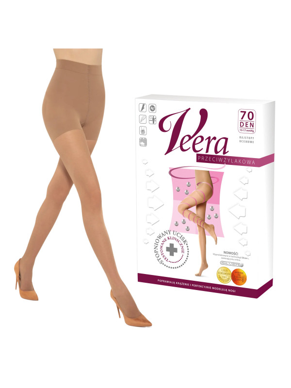 Rajstopy przeciwżylakowe marki Veera oprócz najlepszej jakości, mają ci  o wiele więcej do zaoferowania. Dbają o prawidłowe krążenie, modelują i przy tym wszystkim dodają elegancji. Dodatkowo uciskają nogi wg ucisku profilaktycznego 13-17 mmHg