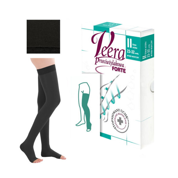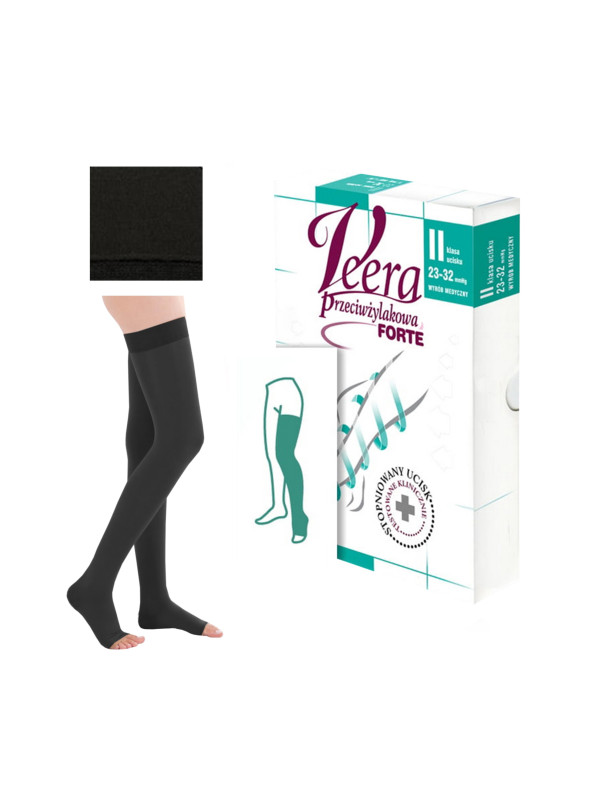 Pończochy Przeciwżylakowe Veera Forte CCL2 Czarne Otwarte palce II Klasa Ucisku