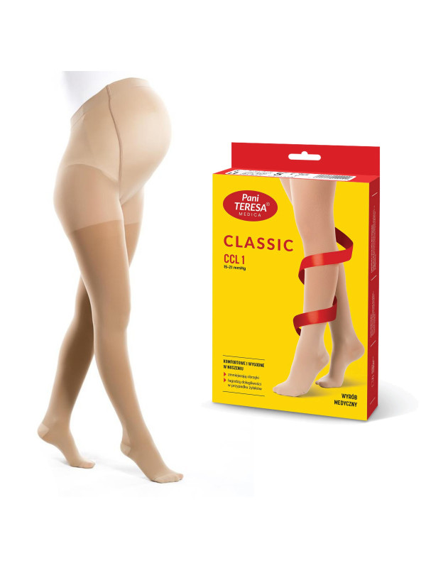 Rajstopy Przeciwżylakowe ciążowe Pani Teresa uciskowe 1 klasa kompresji krótkie PT 0411 Beżowe