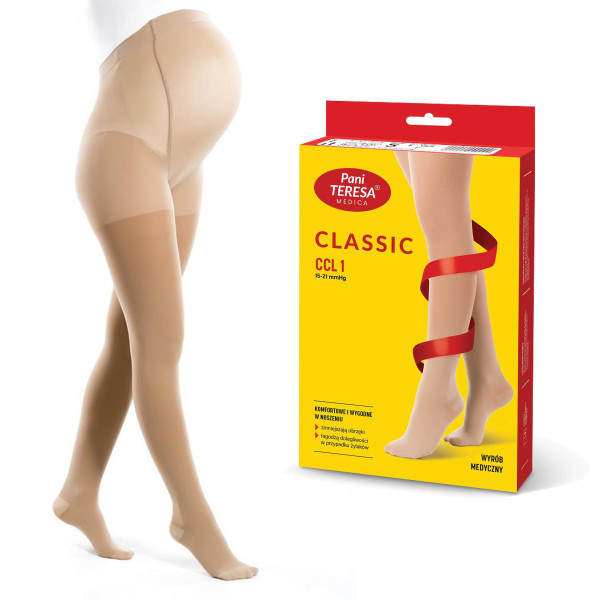 Rajstopy Przeciwżylakowe Ciążowe Pani Teresa uciskowe 1 klasa kompresji Długie PT 0411 Beżowe