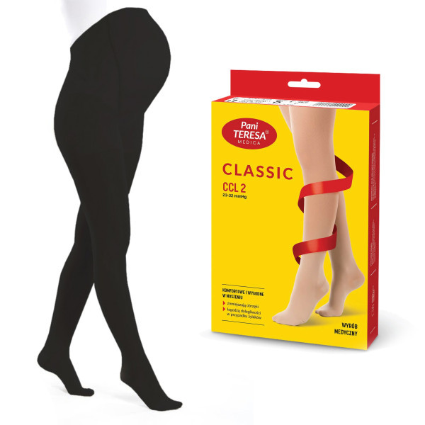 Rajstopy Przeciwżylakowe Pani Teresa ciążowe uciskowe 2 klasa kompresji Długie PT 0402 Czarne