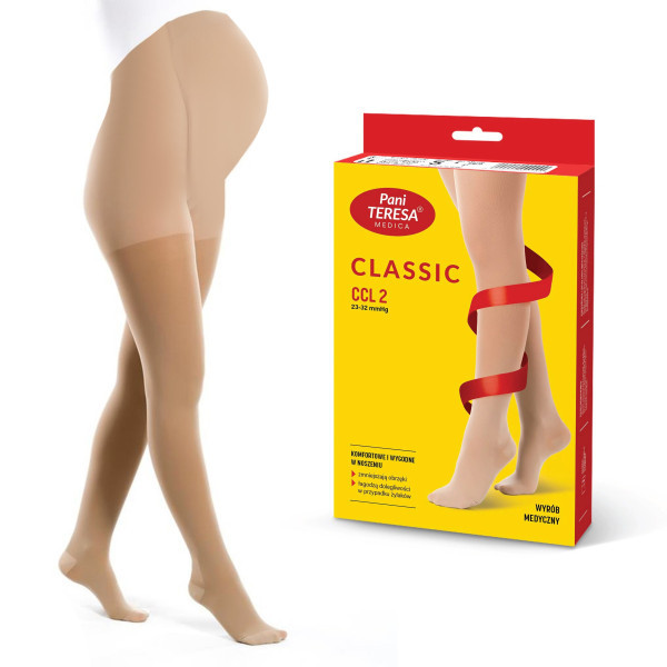 Rajstopy Przeciwżylakowe ciążowe Pani Teresa uciskowe 2 klasa kompresji Krótkie PT 0402 Beżowe