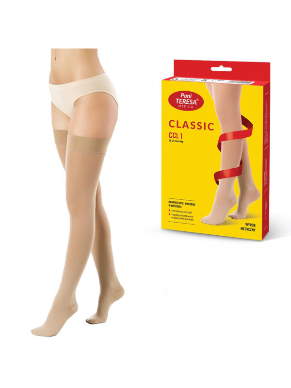 Pończochy Przeciwżylakowe Pani Teresa 1 klasa kompresji Zamknięte Długie PT 0406 Beż - Pończochy medyczne uciskowe