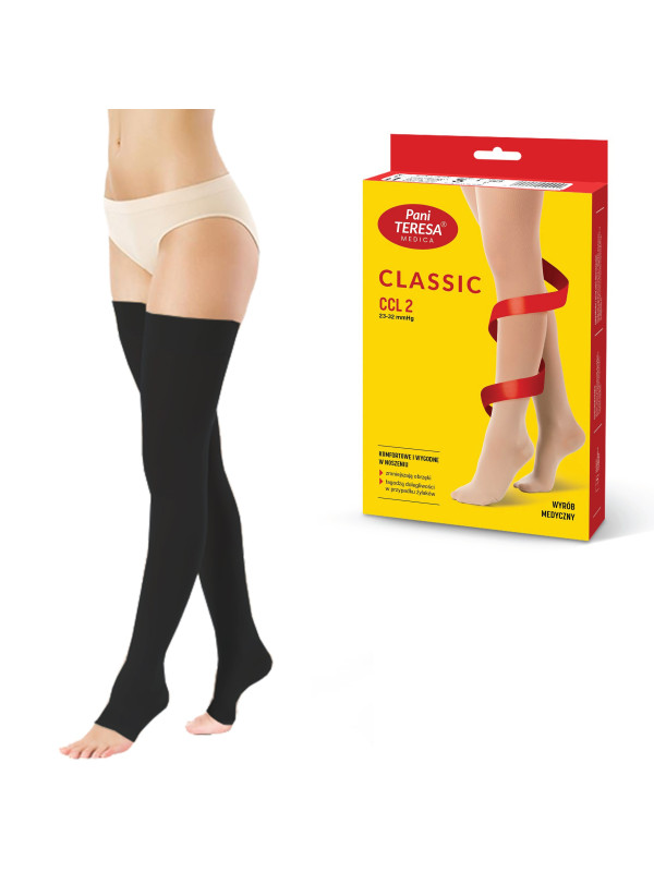 Pończochy Przeciwżylakowe Pani Teresa 2 klasa kompresji Otwarte Długie PT 0403 Czarne - Pończochy medyczne uciskowe