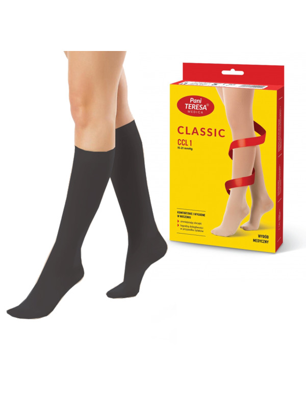 Podkolanówki Przeciwżylakowe Pani Teresa 1 klasa kompresji Zamknięte Długie PT 0408 Czarne - Podkolanówki medyczne uciskowe