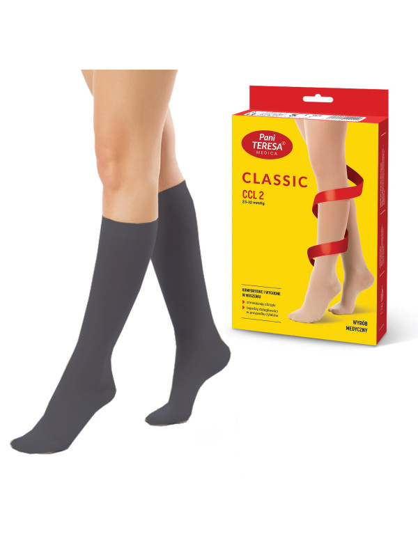 Podkolanówki Przeciwżylakowe Pani Teresa 2 klasa kompresji Zamknięte Długie PT 0405 Grafitowe - Podkolanówki medyczne uciskowe