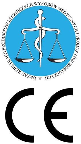 Produkt jest zarejestrowany przez Urząd Rejestracji Produktów Leczniczych, Wyrobów Medycznych i Produktów Biobójczych jako WYRÓB MEDYCZNY i spełnia wynikające z tego bardzo rygorystyczne normy, gwarantuje bezpieczeństwo i jakość.
