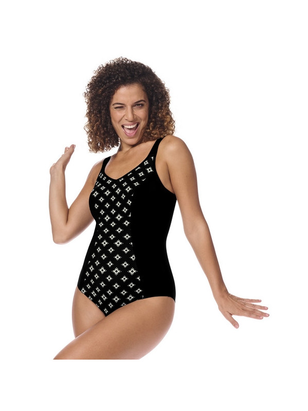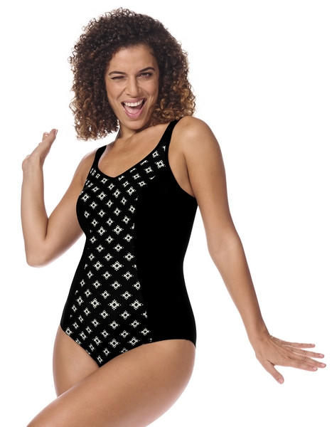 Odkryj luksusowy komfort i funkcjonalność w eleganckim jednoczęściowym stroju kąpielowym Amoena Palermo FB 71746. Ten model został stworzony z myślą o kobietach po mastektomii, które cenią sobie nie tylko piękny wygląd, ale także doskonałe wsparcie i bezpieczeństwo w wodzie. Etniczny wzór na tle klasycznej czerni nadaje całości wyrafinowanego stylu, a dopracowane detale sprawiają, że jest to strój, który łączy w sobie modę, technologię i wygodę.