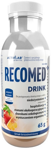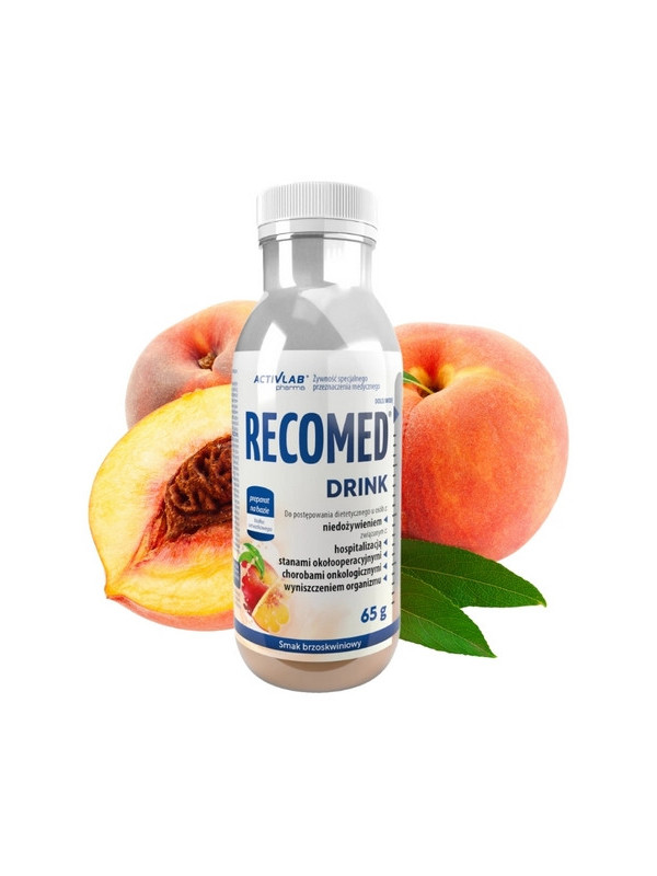 Łatwy w przygotowaniu – wystarczy dodać wodę, wstrząsnąć i gotowe! Smak brzoskwiniowy oraz praktyczne opakowanie sprawiają, że Recomed® to wygodne i przyjemne rozwiązanie dla codziennego wsparcia diety lub jako jedyne źródło pożywienia w okresie zwiększonych potrzeb.